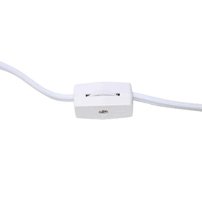 - Features a 5′ white plug in cord with an in-line gear (rotary) switch