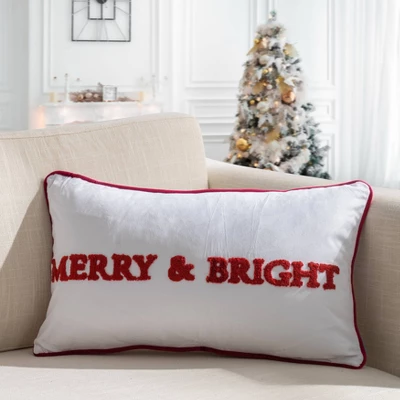Looking for Christmas home decor and ideas to dress up your holidays? From plaids to solids in holiday reds and neutral tones, there are so many new ways to outfit your home in holiday style. Swapping out your regular pillows with holiday pillows is an easy way to create Christmas warmth and festivity. This ‘Merry & Bright’ throw pillow is the perfect way to bring the holiday spirit into your home and great to mix and match with other holiday throw pillows.