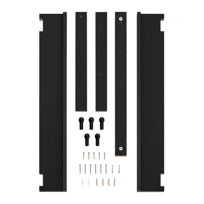 - Space-saving coat rack storage shelf in Black laminate MDF finish with Black wood hanging hooks in a chic, modern design that incorporates easily into any room style