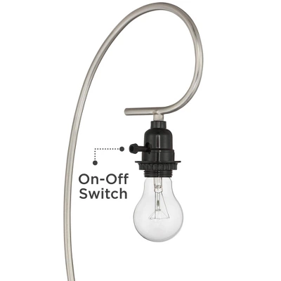 - Brushed nickel finish bases and arc arms. Metal construction.