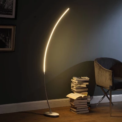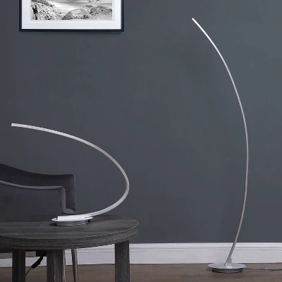 Take a stand with this metal LED floor lamp, appearing as if it belongs in a modern art museum. Illuminate your space in ultra-contemporary style with this 62.25″ Bradie brushed nickel LED arc tube floor lamp! Crafted of aluminum metal in a clean brushed nickel finish, this lamp features a dramatic arched post body on a smooth oval pedestal base. Topping the arch, a curved light features an integrated 18 W LED system to disperse bright light throughout your space. The clean and simple Bradie LED floor features improved design and feather-light concept. Minimalist allure is the distinctive feature of this metal energy-efficient LED floor lamp. You’ll love how this lamp meets the stylish standards of your minimalist home. The energy efficient LEDs produce a warm light that will last for up to 50,000 hours.