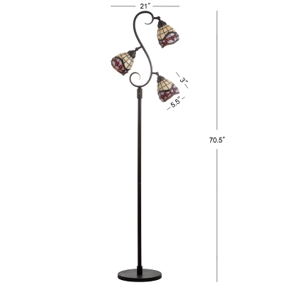 Simultaneously whimsical and classic, the trio of Tiffany-style stained glass shades on this floor lamp makes for a stunning addition to any space. While steeped in traditional design, this piece is updated with the functionality expected today — a step-on on/off button, LED bulb compatibility, and a beautiful silk-wrapped cord. Each shade is hand-made by artisans who specialize in the intricate art of stained glass soldering.