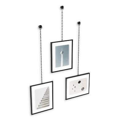 - DRESS UP YOUR WALLS: Fotochain comes as a set of 3 photo frames, each suspended by a metal chain hung from a sleek matching knob