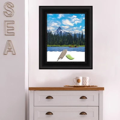Give your home or office the finishing touch with this picture frame featuring the Parlor Black frame which is a satin black frame with an ornate scalloped design and an embossed inner edge.. The frame is 3.25 in. wide and stands 1.5 in. off the wall. A beautiful frame showcases special photos, awards, and mementos and can turn any piece of art into beautiful home decor. Individually made by hand in the USA using traditional custom framing techniques, it has the quality you would expect from your local frame shop and holds its value with premium finishing that can be appreciated up close. Because of our attention to detail and focus on artistry, architects, interior designers, and homeowners alike choose this picture frame to create beautiful living spaces.