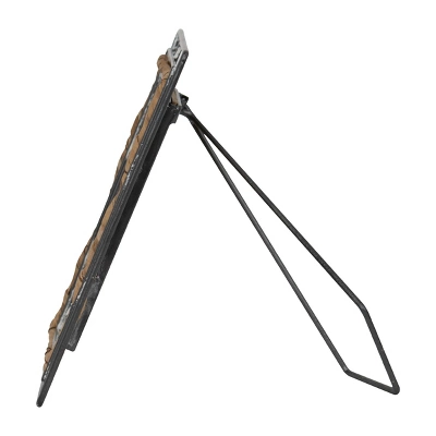 - This frame has an easel back allowing for portrait or landscape orientation on a tabletop surface. The opening between the metal wire edges can be used to hang on the wall.
