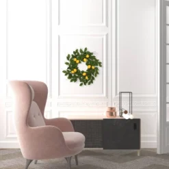 28″H Sullivans Leaf And Pinecone Wreath For Front Door, Multicolored