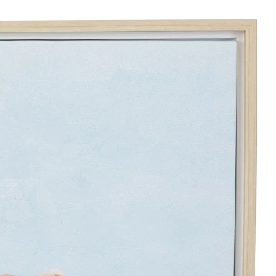 - •Canvas wall art highlights a soft pastel white and blue painting complemented with a natural wood brown finish frame