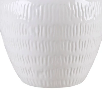 Add dimension and a modern flair to any room in your home with the Hampton Hill Celine Textured Ceramic Table Lamp. This ceramic table lamp features a textured vase design with a white finish to create a charming contemporary look. Comes with a 2 year limited warranty. Spot clean only, handle with care.