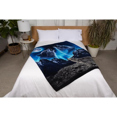 - Made of 100% polyester and measuring 50″ x 60″, this II Howling Wolf fleece blanket is machine washable and will keep you warm all winter long.