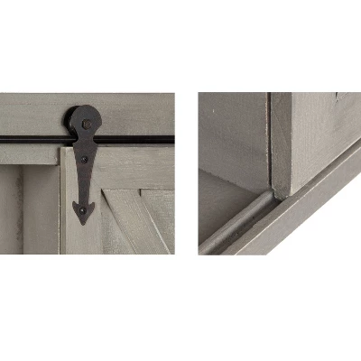 - Rustic Charm: The Cates wall storage cabinet with mirror provides purpose and style with decorative charm. The distressed wooden gray-washed finish and sliding barn door add a classic addition to your home decor
