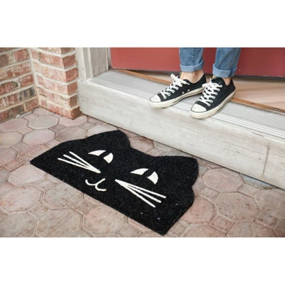 Your visitors will be happy to cross paths with Entryways’ cat-shaped “Cat Face” doormat, especially when they see the friendly face of this black feline, whiskers and all, smiling up at them. This mat measures 17” by 28” and is crafted to the industry’s highest standards. Made from all-natural coir, it has a PVC backing and is 1/2″ thick.