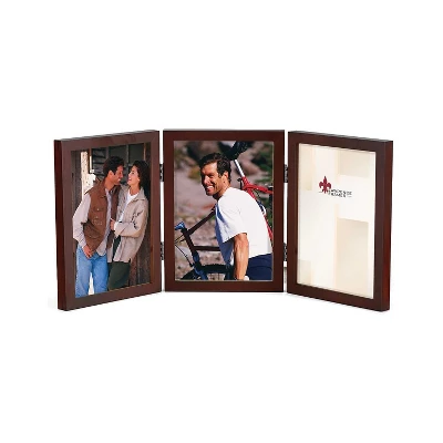 This walnut wood picture frame is the same you will find in studios & galleries and is the perfect frame for simply and elegantly framing any image. It is a high quality wood frame joined in the corners with a “spline” joint. At 1/2 ” wide it is the perfect frame to use for a wall gallery. This picture frame comes individually boxed, and includes high quality black wood backing with an easel for vertical or horizontal tabletop display, and hangers for wall mounting. Photo size: 4×6 Triple. Color: Walnut. Constructed of wood with a satin walnut stained finish; includes high quality black backing. A classic studio frame design also available in many other sizes. Material: Wood. Sold as 1 Each.