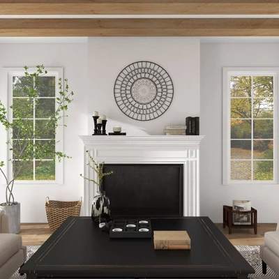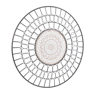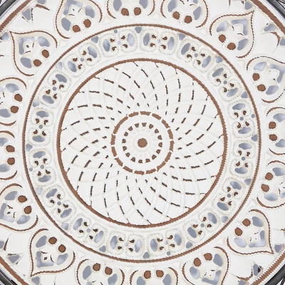 - •This round wall art features an intricately crafted sculpture with a Moroccan-inspired central pattern design