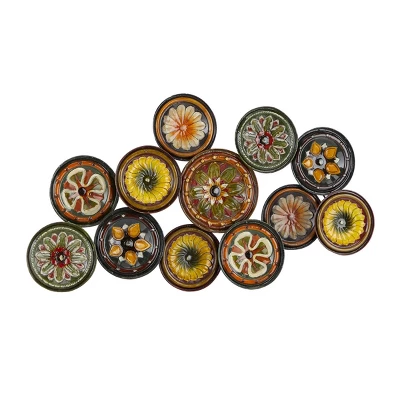 - •Multicolor metal wall design flaunting round plates with floral patterns