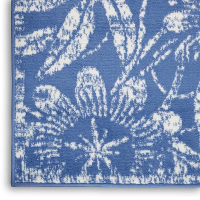 With its oversized floral patterns, this Whimsicle Collection area rug adds rustic charm to your country lodge or farmhouse. Machine made of polyester in soft blue with white floral motifs in a lightly distressed finish, this design creates an enchantingly vintage foundation for your living room, dining room, bedroom, or home office decor.