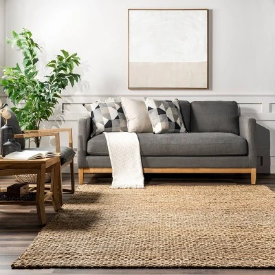 For the final touch to your space, add the nuLOOM Hand-Woven Hailey Jute Rug. In a natural brown hue, this neutral woven rug looks at home in front of your bay window or resting under your entryway console table. This rectangle jute rug is sure to bring a warm accent to any space.