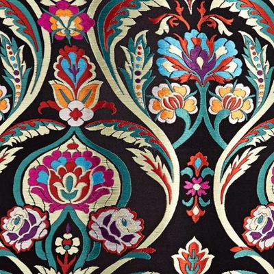 - Antique brass finish canopy. Multi-color embroidery shade.
