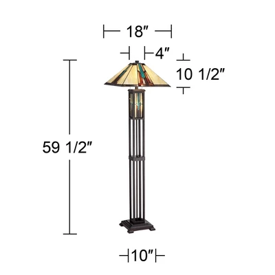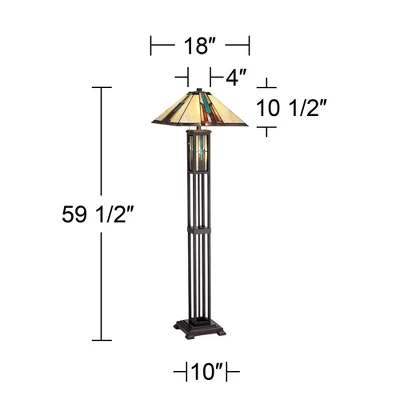 - Mission-style floor lamp from the Robert Louis Tiffany brand. Bronze finish cast resin base.