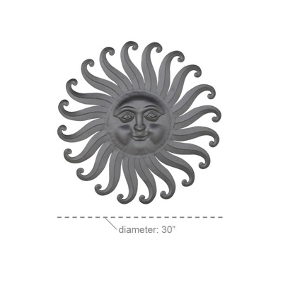 - •This metal wall decor features embossed details that form a jolly face in the center of the sun