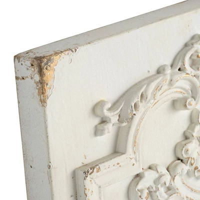 Inspired by ornate boiserie designs, this pair of Prasoon Wall Panels instantly enhances the elegance of any space. A simple White finish gives way to a weathered textural effect, giving a timeworn appearance that makes each individual panel one-of-a-kind. Experiment with spacing to find the arrangement that best works for your space. This item belongs to a collection of items created and designed by A & B Home, a family-owned business founded in 1993. A & B home Is recognized as an international leader specializing in quality products with an innovative design for the home decor, furniture, garden, and seasonal product categories.