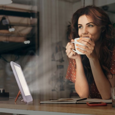 We all feel better under natural daylight – more energetic, more awake, even more joyful! Research has shown that this is in part due to our brains releasing serotonin, a brain chemical that helps regulate mood, when exposed sunlight. Sunlight can be hard to come by during the winter months which can bring about Seasonal Affective Disorder (SAD) or the “Winter Blues”. Light therapy has been shown to help alleviate SAD – enhancing mood, elevating energy and even improving sleep quality. The OttLite ClearSun® LED Light Therapy Lamp is like no other because of the proprietary ClearSun LEDs that come as close to the spectral output of the sun as you can get. Now you can have the rejuvenating power of natural daylight all year long. This discreet design is great for home, dorm, and office. With three brightness levels up to 10,000 lux, the device can be used horizontally or vertically with the included stand.