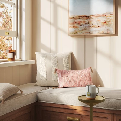 Add some boho vibes to your living room or sitting space with this Textural Woven Striped Square Throw Pillow from Threshold™. This decorative pillow showcases woven striped bands with tufted accents for a pleasing aesthetic. Featuring a 100% cotton exterior with soft filling, it’s sure to add comfort and style to your sofa, chair or bench.