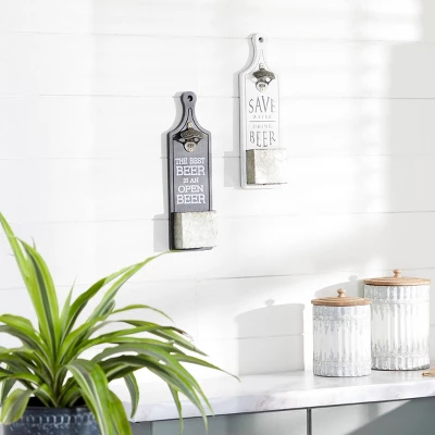 - •This wall-mounted bottle opener decor is a 2-piece set of accent pieces with decorative catchers and typography